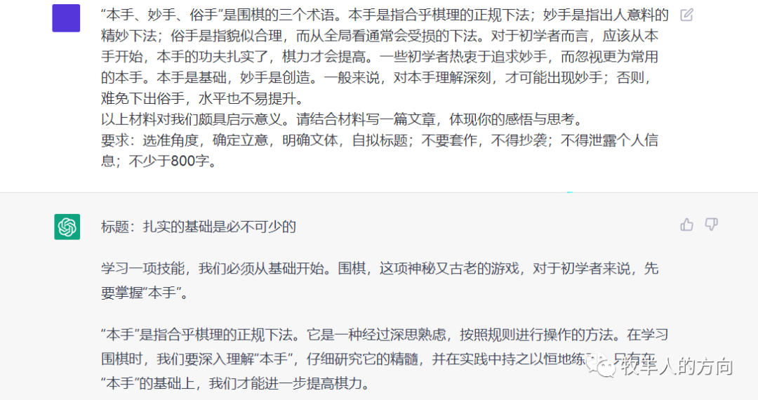 5)对于主题理解性的话题,尚缺少一些人类的个性理解,比如这篇广东省2022年的高考作文“本手、妙手、俗手”。