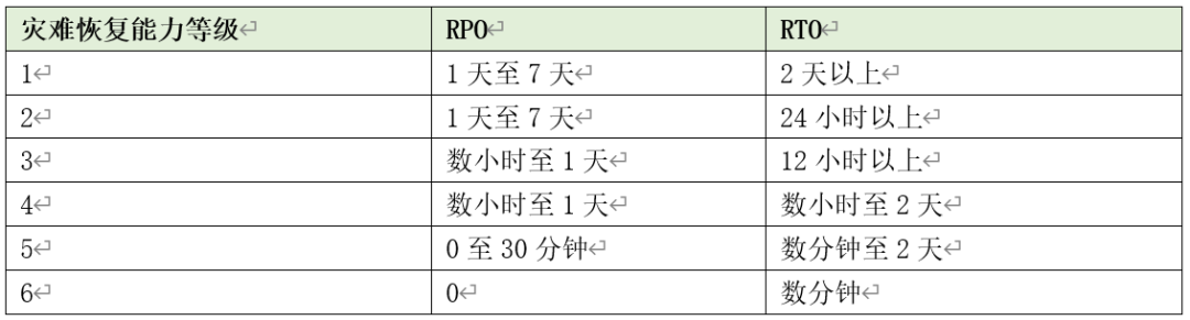 图1-17 不同灾难恢复能力等级下的RPO和RTO