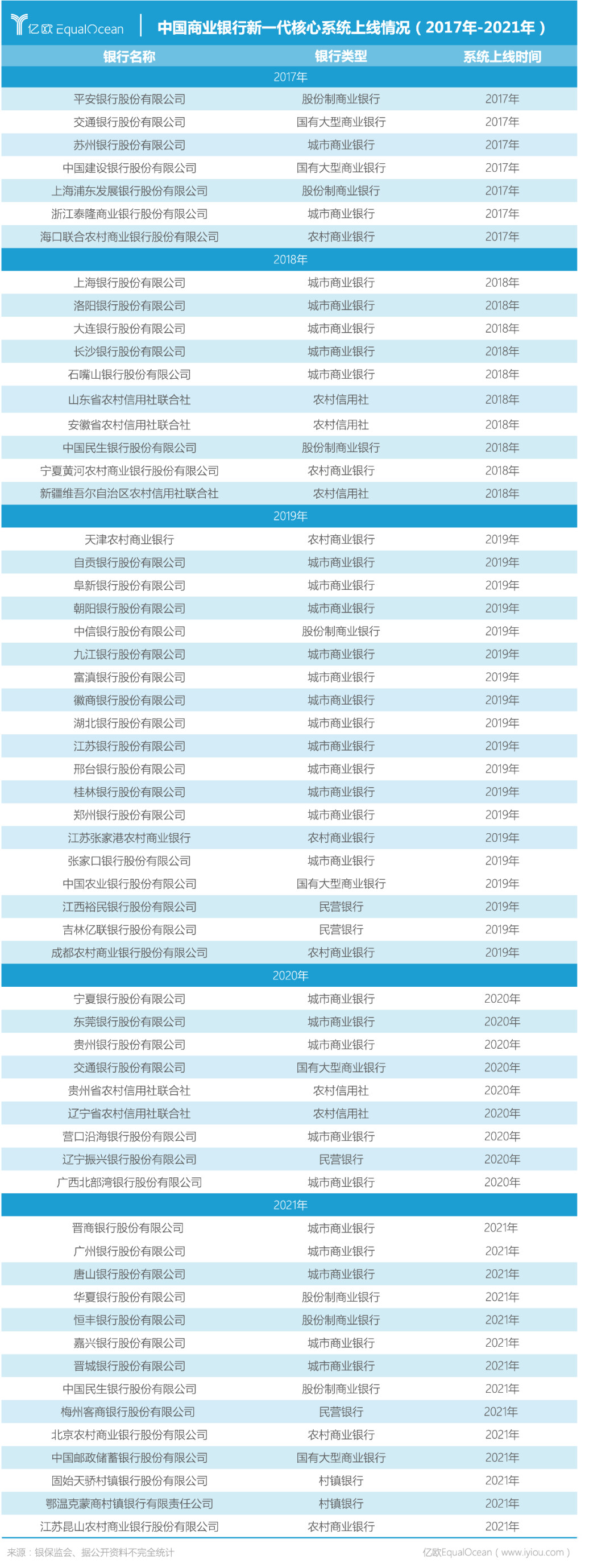 图1-16 我国银行新核心建设情况(2017-2021年)