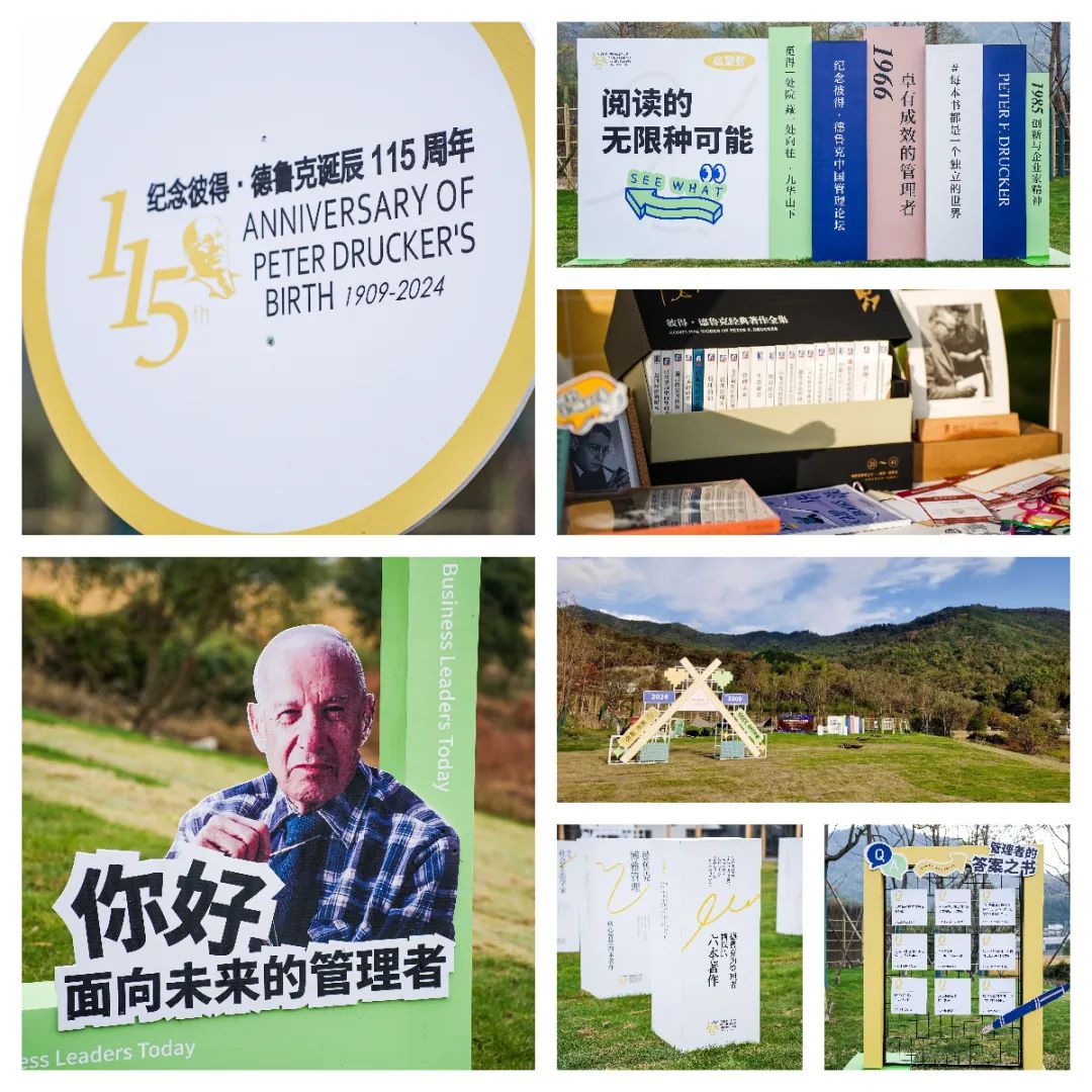 此次论坛在九华山下举办,为这片风景如画的土地增添了更多的人文色彩和蓬勃活力。在广阔的草坪上,主办方精心布置了众多展现德鲁克生平事迹的展览,引来众多“德友”友驻足观赏、拍照留念。他们与这如画的景致交相辉映,构成了一幅幅动人的画面。