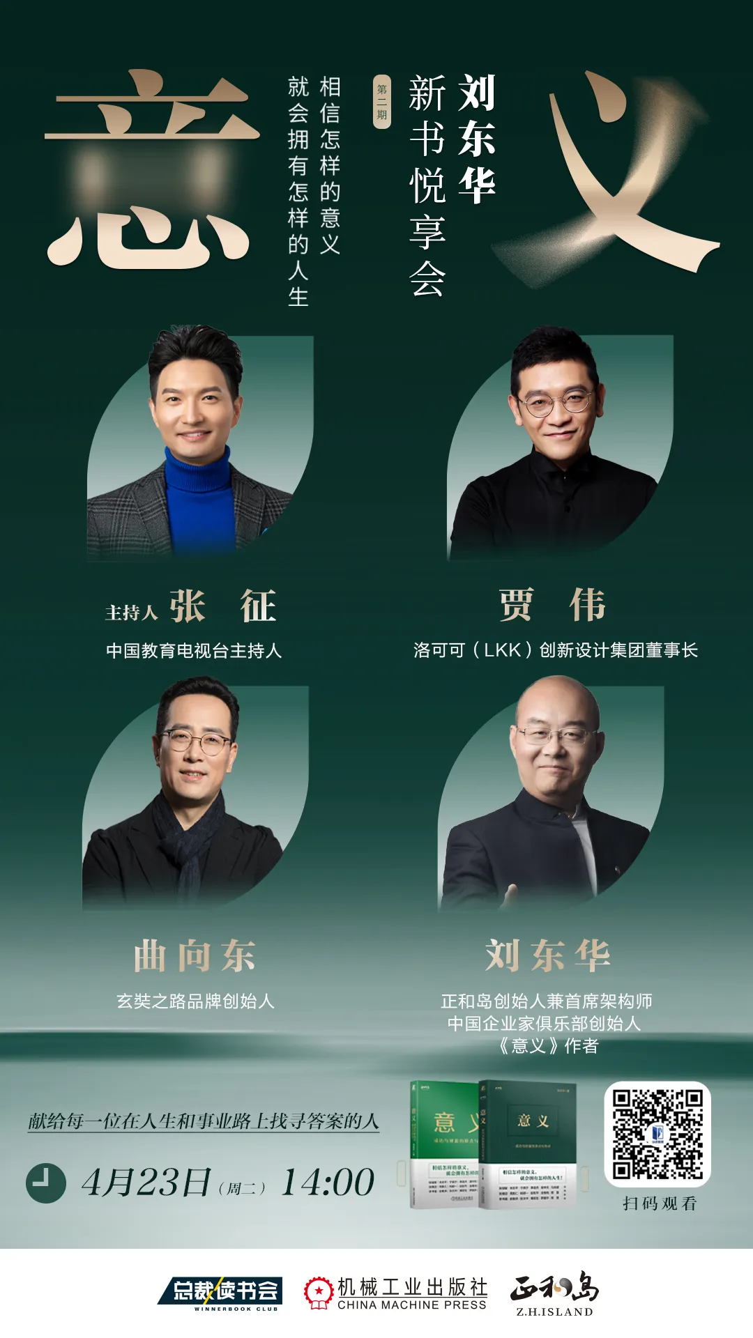 刘东华新作《意义》探讨人生三问:体验、创造与传承。4月23日世界读书日,新书悦享会邀您一起探索!