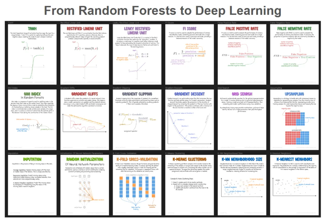 “如果你是刚开始学习机器学习,或者想要复习之前学过的材料,这些闪记卡非常适合!”
