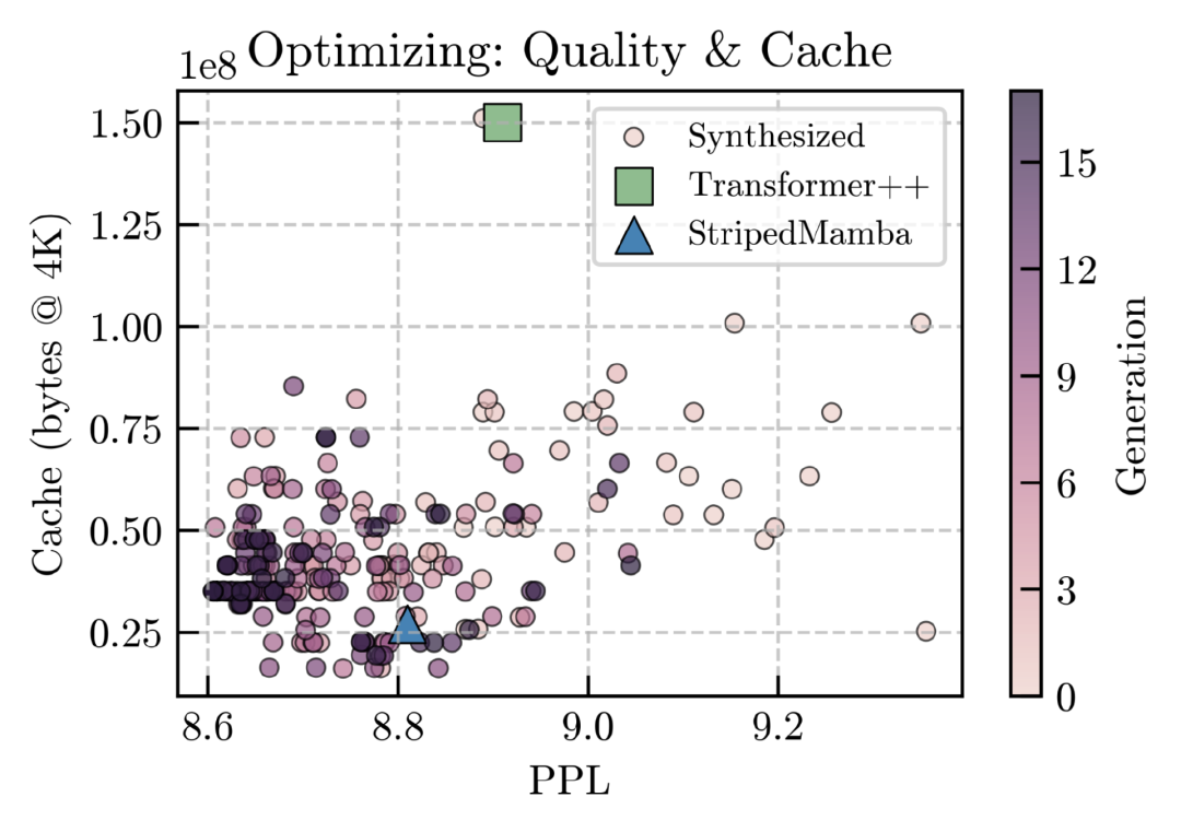 Liquid AI 首先在改进的语言建模架构的设计中评估 STAR,针对三个组合目标进行优化:i.)质量(训练后的困惑度),ii.)质量和参数效率,以及 iii.)质量和缓存效率。