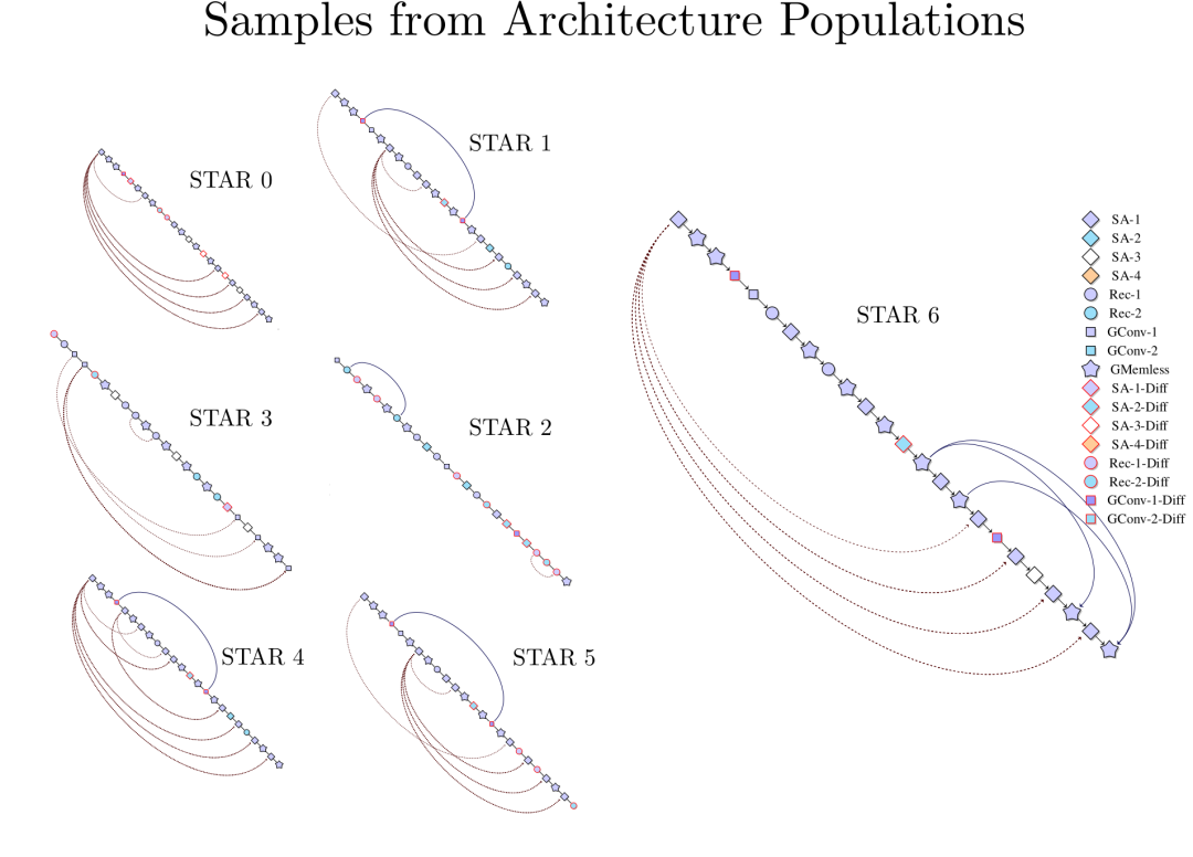 STAR 算法的优势在于它能够根据自定义的任务、指标和硬件定制架构,并且可以支持多目标优化。此外,STAR 还可以作为分析工具,用于识别进化过程中出现的重复架构主题,从而推动性能提升。