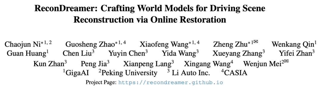 论文标题:ReconDreamer: Crafting World Models for Driving Scene Reconstruction via Online Restoration
