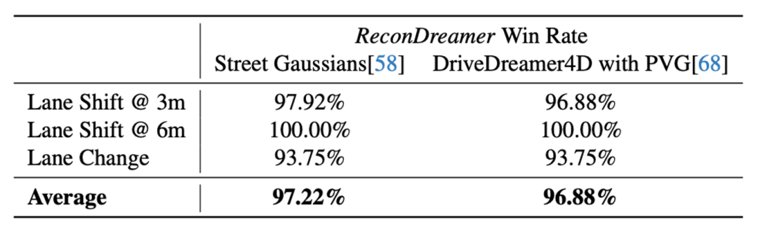 此外,本文还通过 user study 证明用户更加偏好 ReconDreamer 的渲染效果,获得了超过 95% 的投票率。