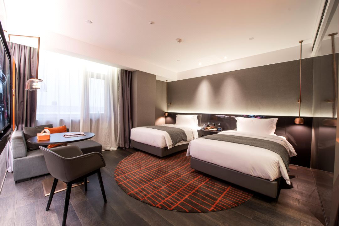 酒店超有设计感,是国内新锐设计师黄永才力作。客房内的家居都是暗黑色系,装修风格很有特色。