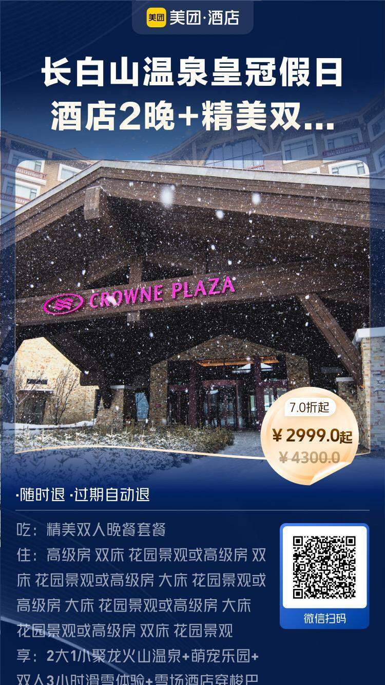 高级/花园景观房2晚+双人晚餐+双人3小时滑雪体验+2大1小温泉门票+换乘中心VIP通道等,2999元。有效期到2025年3月底,热门日期有加价。