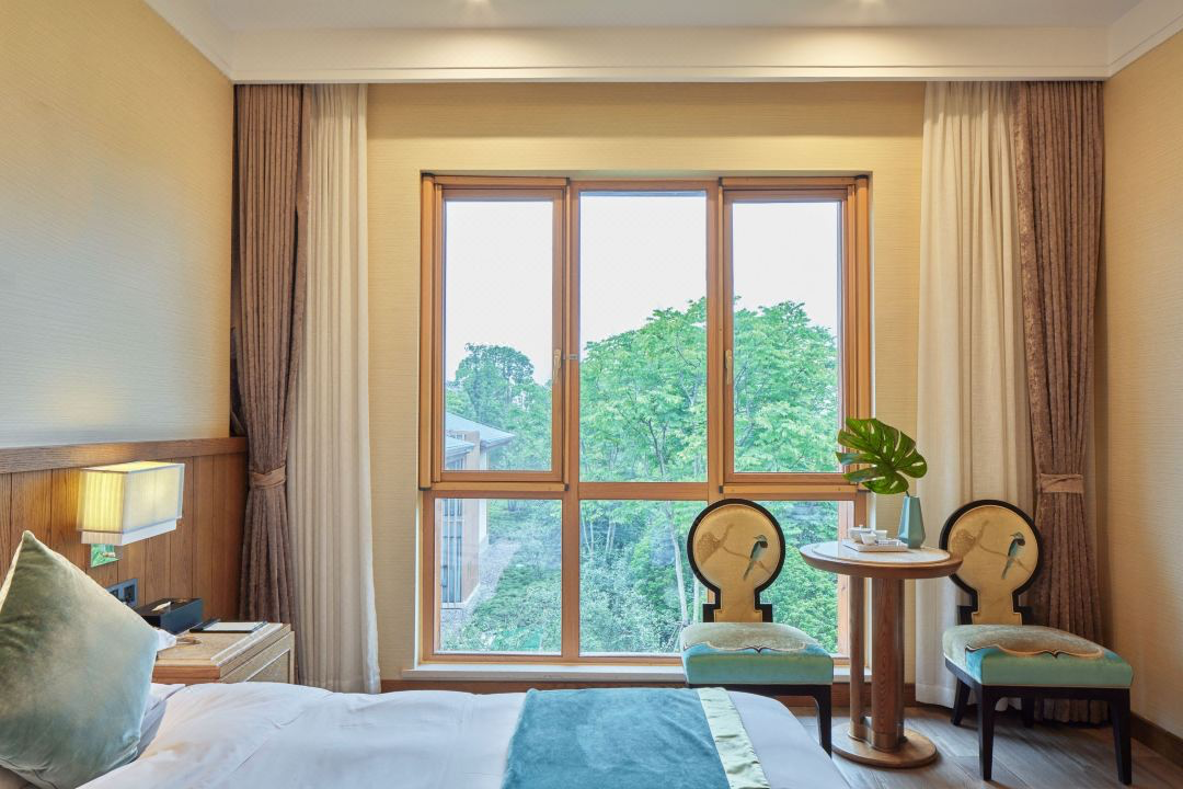 怡景客房是中式简约风格,并配备了戴森吹风机。套餐拍3份,用满1000-100的券。
