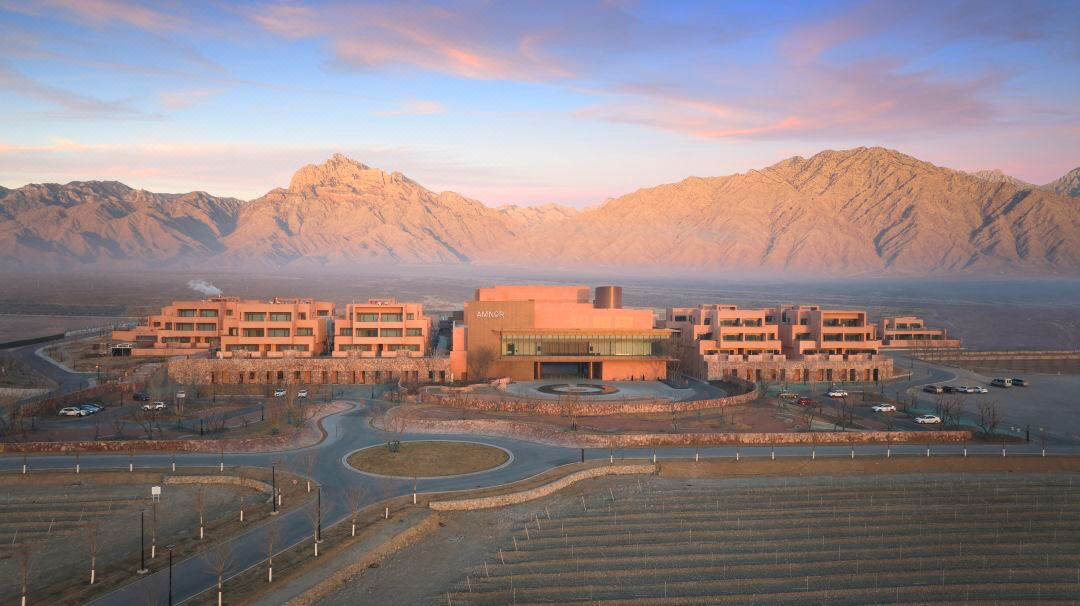 酒店位于贺兰山脚下,直面著名的卧佛峰,拥有着独一无二的自然景观与得天独厚的红酒产区的地域优势。