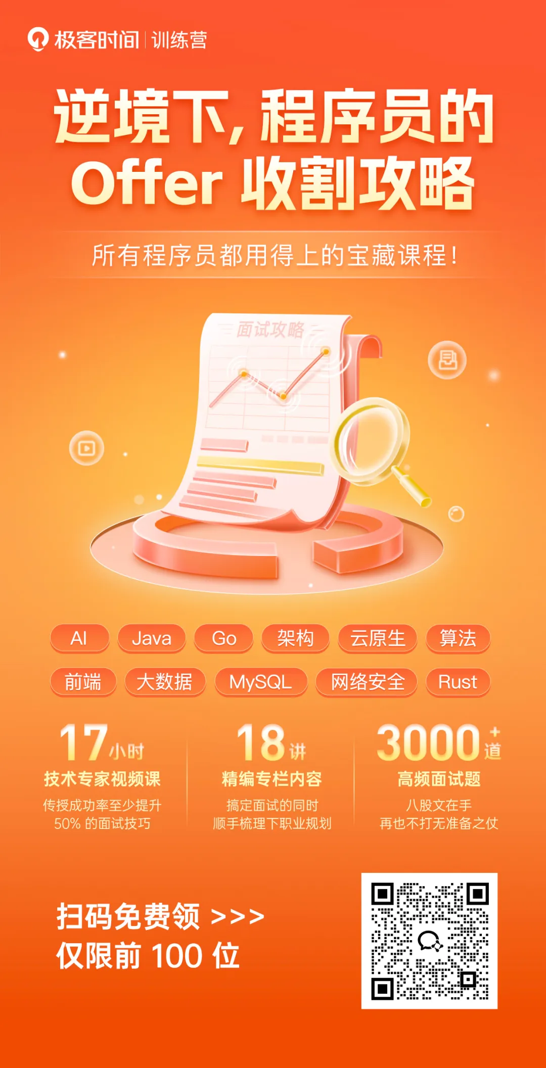 原文标题:3000+面试题,17小时专家课:程序员的求职加速包 | 极客时间