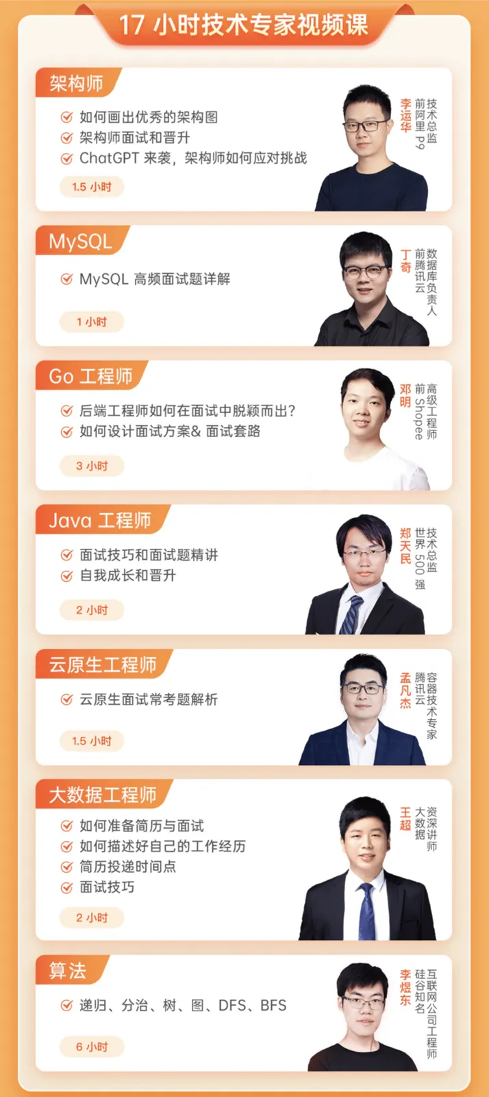 理论学习固然重要,但实战经验同样不可或缺。通过 17 小时的技术专家视频课,你将有机会直接向行业大咖学习,获取宝贵的第一手经验。