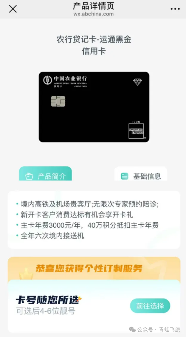 农行运通黑金卡上线!40万积分抵扣3000元年费,享境内接送机、贵宾厅等权益。