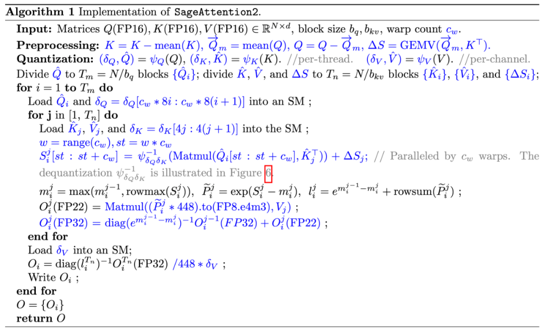 下图展示了 SageAttention2 的算法流程:
