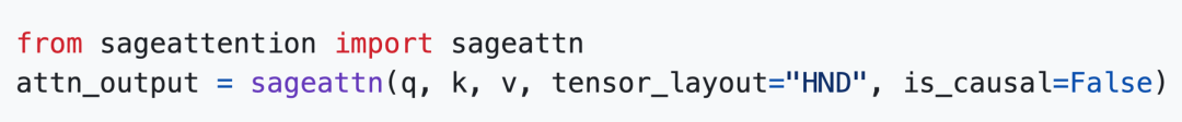 具体来说,SageAttention2 使用起来很方便,克隆仓库(git clone https://github.com/thu-ml/SageAttention )并执行 python setup.py install 后,只需一行代码便可以得到 Attention 的输出,可以使用该接口方便地替换任意模型中的 Attention 函数: