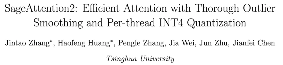 论文标题:SageAttention2: Efficient Attention with Thorough Outlier Smoothing and Per-thread INT4 Quantization