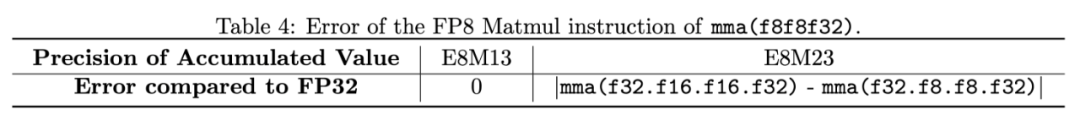 (2)研究团队发现 Nvidia 的显卡上,FP8 的矩阵乘法指令 (mma.f32.f8.f8.f32) 的乘法累加器并不是官方宣称的 FP32 精度,而是只有 FP22 精度,这导致了 PV 矩阵乘法出现较大的累加误差。