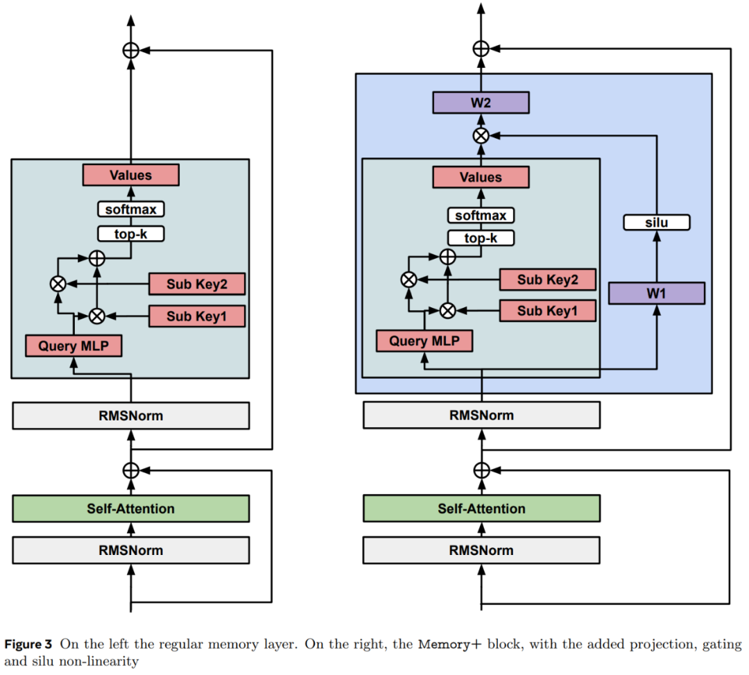 其次,记忆层在键和值的数量方面通常具有更大的规模,因此稀疏查询和更新是必需的。