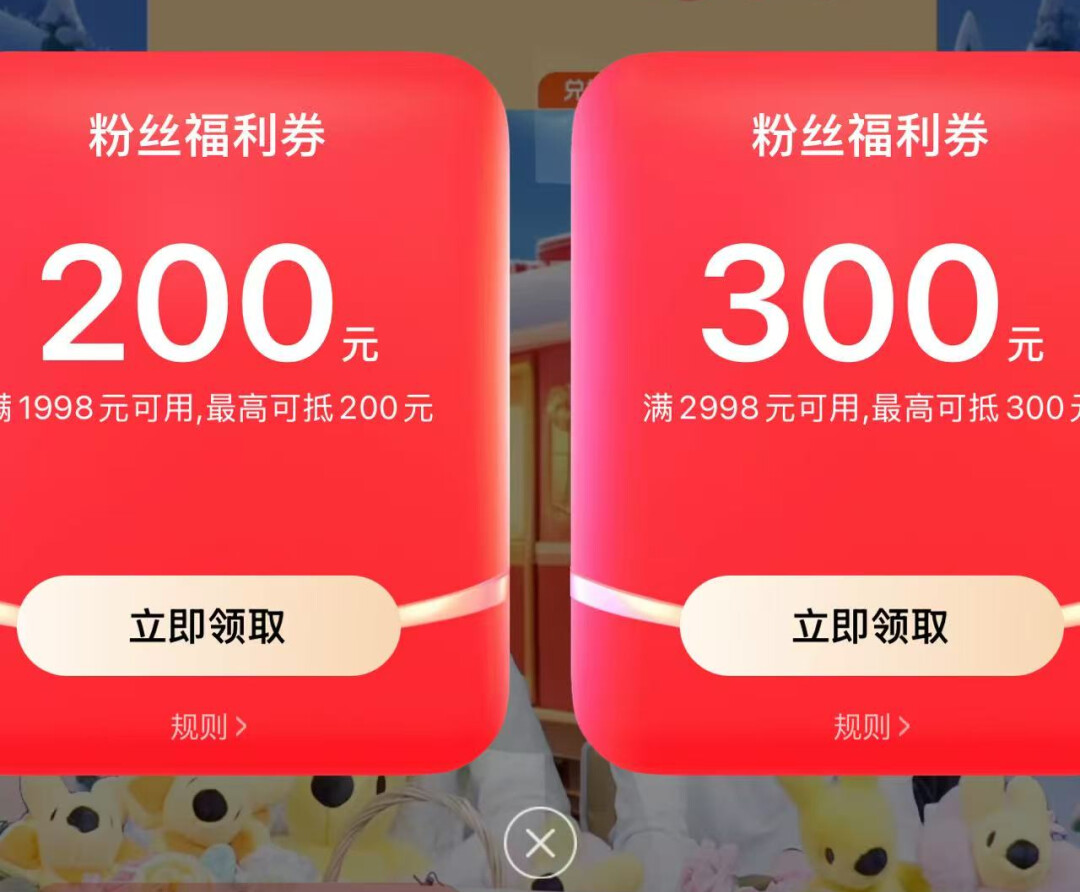 第一种券,如下图所示,直播开始后会固定在左上角,直接领取,每个优惠券可领3次。