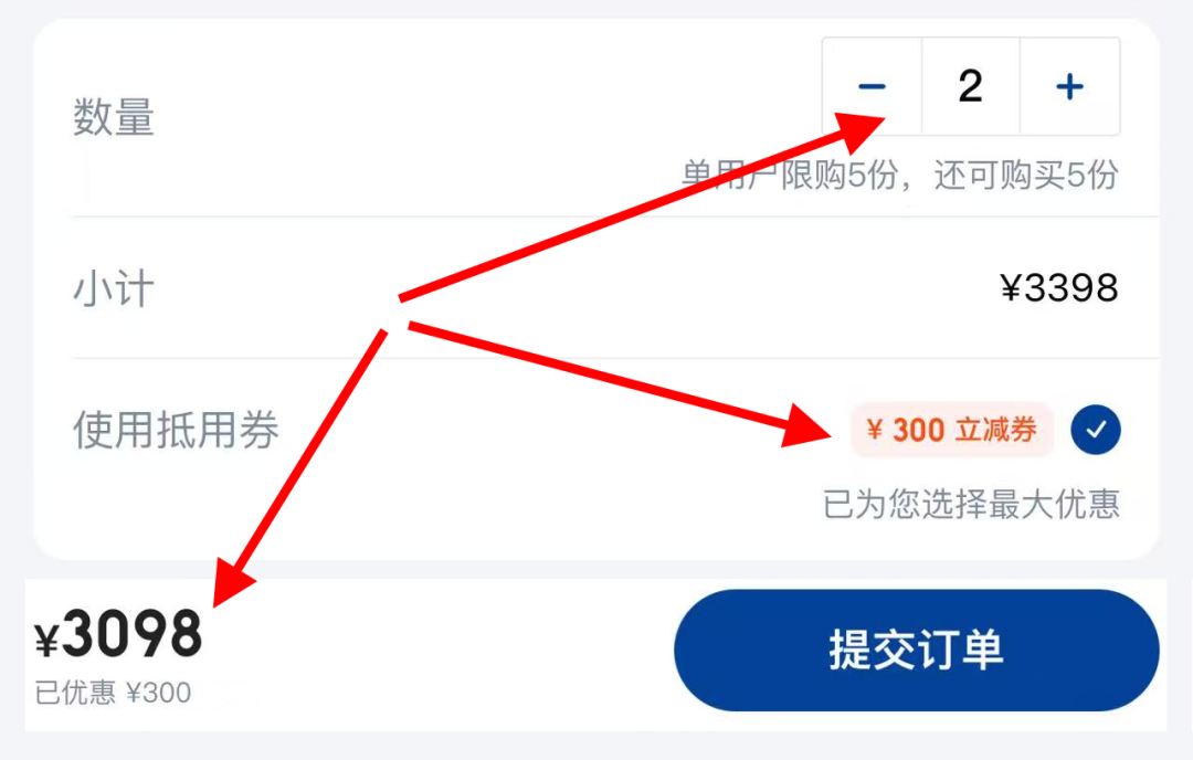 直接用券的不用多说,想用大额券的建议凑单,即多买几份达标满减标准,这时候优惠力度更大。