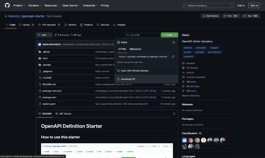 让我们下载 Redocly 的 OpenAPI 入门示例。