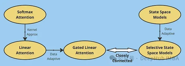 这一限制促使了门控线性注意力的提出,通过引入门控机制实现选择性信息保留。随后,状态空间模型提供了一个全新的视角,通过类卷积操作处理序列数据。从基础SSMs到时变系统,再到选择性SSMs的发展过程,与线性注意力到门控注意力的演进具有相似性——在这两个方向上,增强模型对输入数据的适应性都是提升性能的关键。