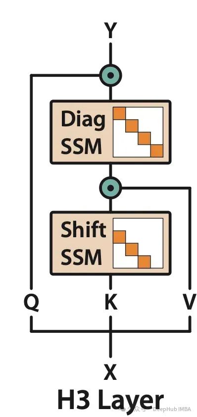 H3将输入分解为三个通道以模拟K、Q、V结构,并通过组合两个SSM层和两个门控机制来模拟线性注意力的功能。实验结果表明,这种架构设计在实际应用中展现出了优异的性能。