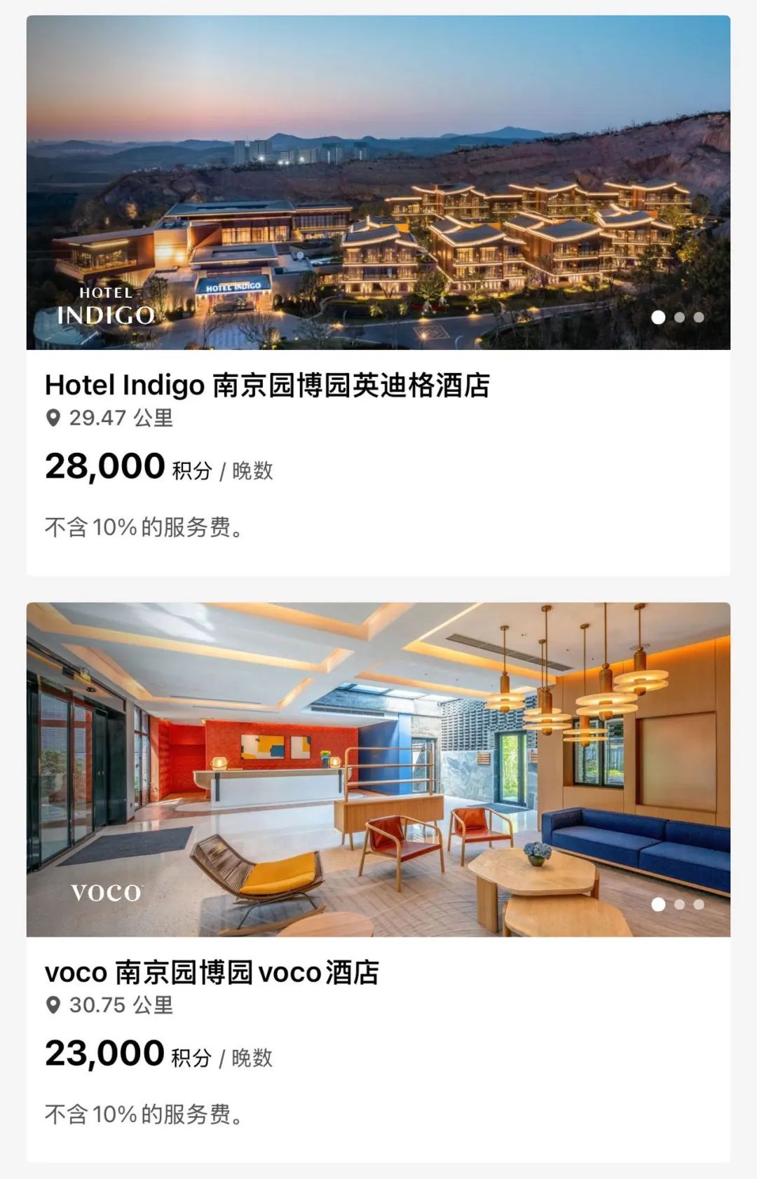 比如周末去南京汤山泡温泉,南京园博园英迪格28000积分,比现金1300+/晚要便宜不少。