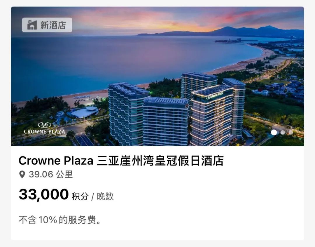 再比如春节期间的三亚,还有不少酒店有积分房可以兑换,这家新开的三亚崖州湾皇冠假日酒店33000积分。