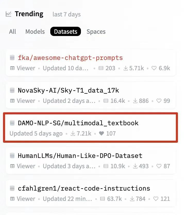 该研究还登上了huggingface dataset trending榜单,不到两周下载量已经7000+。