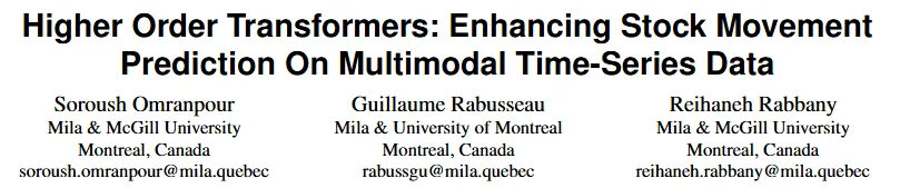 Higher Order Transformers: Enhancing Stock Movement Prediction On Multimodal Time-Series Data